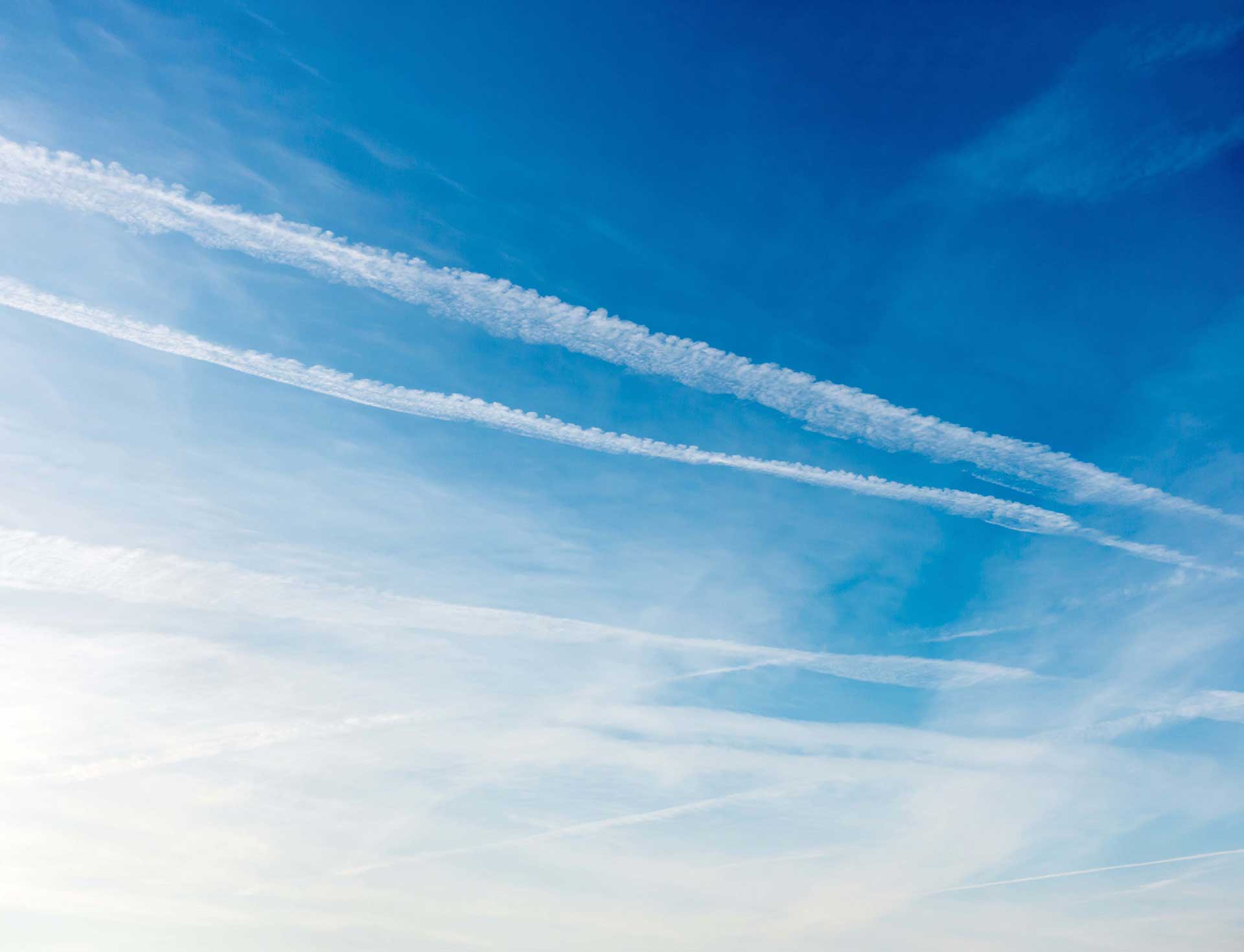 Wir alle kennen es, wenn Luft kondensiert. Wenn es draußen kalt ist, wird unsere warme Atemluft sichtbar. Wir kennen das Phänomen auch von den sogenannten Kondensstreifen, die Flugzeuge manchmal hinter sich herziehen. Das Prinzip ist das gleiche: Heiße, wasserdampfhaltige Abgase aus Flugzeugtriebwerken treffen auf kalte Luft. Bei einem Flugzeug sind das Kohlendioxid, Wasserdampf, Stickoxide und Ruß, die bei der Verbrennung von Kerosin entstehen. Sie gelangen in die Atmosphäre. Dabei bilden sich in kurzer Zeit Eiskristalle, die hinter den Düsentriebwerken des Flugzeugs als weiße Wolkenstreifen sichtbar werden. Die Eiskristalle entstehen, weil der Wasserdampf an den Rußteilchen zu winzigen Tröpfchen kondensiert, die dann bei der kalten Umgebungsluft sofort gefrieren. Da dieser Prozess des Gefrierens eine kurze Zeit erfordert, ist zwischen den Triebwerken des Flugzeugs und den Kondensstreifen immer eine charakteristische Lücke zu beobachten. Solche Kondensstreifen treten in der Regel bei unter -40 °C auf. Die genaue Temperatur hängt im jeweiligen Fall von der Luftfeuchte, dem Luftdruck, der Art des Treibstoffes und weiteren Faktoren ab. Je nach Umgebungsbedingungen zerfallen diese Kondensstreifen innerhalb von Sekunden, spätestens jedoch nach ein bis zwei Minuten. Wie bei der Atemluft. Aber haben Sie schon einmal beobachtet, dass Sie Ihre Atemluft den ganzen Weg, den Sie seit einer halben Stunde gegangen sind, zurückverfolgen können? Nein? Bei Kondensstreifen soll dies laut offizieller Aussagen nämlich möglich sein.