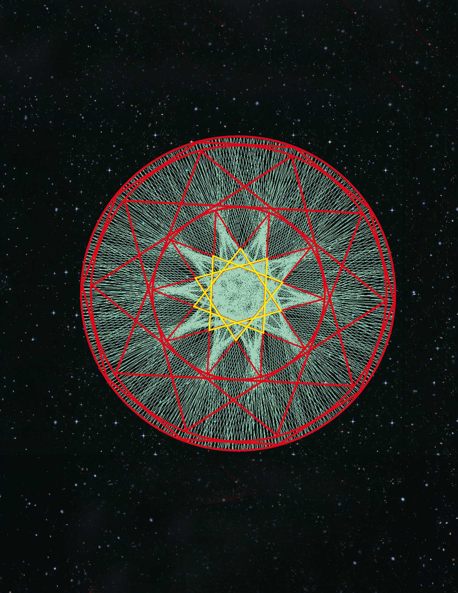 Das ist der Beweis, dass alle Sternfiguren in ein großes Gewebe eingebunden sind. Man kann von einem Organismus sprechen, weil jeder Bestandteil dazugehört und den ihm zugehörigen Platz hat. Geometrisch sind Quadrate und Dreiecke die strukturgebenden Elemente beim Aufbau des Sternenorganismus. Dieser Organismus reicht sogar bis in die Unendlichkeit, was für andere Organismen nicht gilt. (Vielleicht noch für das Weltall insgesamt, von dem schon Plato gesagt hat, dass es ein lebendiges Wesen ist.) So ist es wohl berechtigt, dass an dieser Stelle eine Jubelfanfare erklingt: