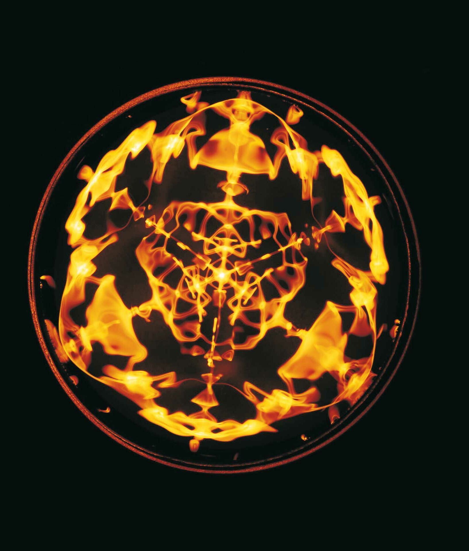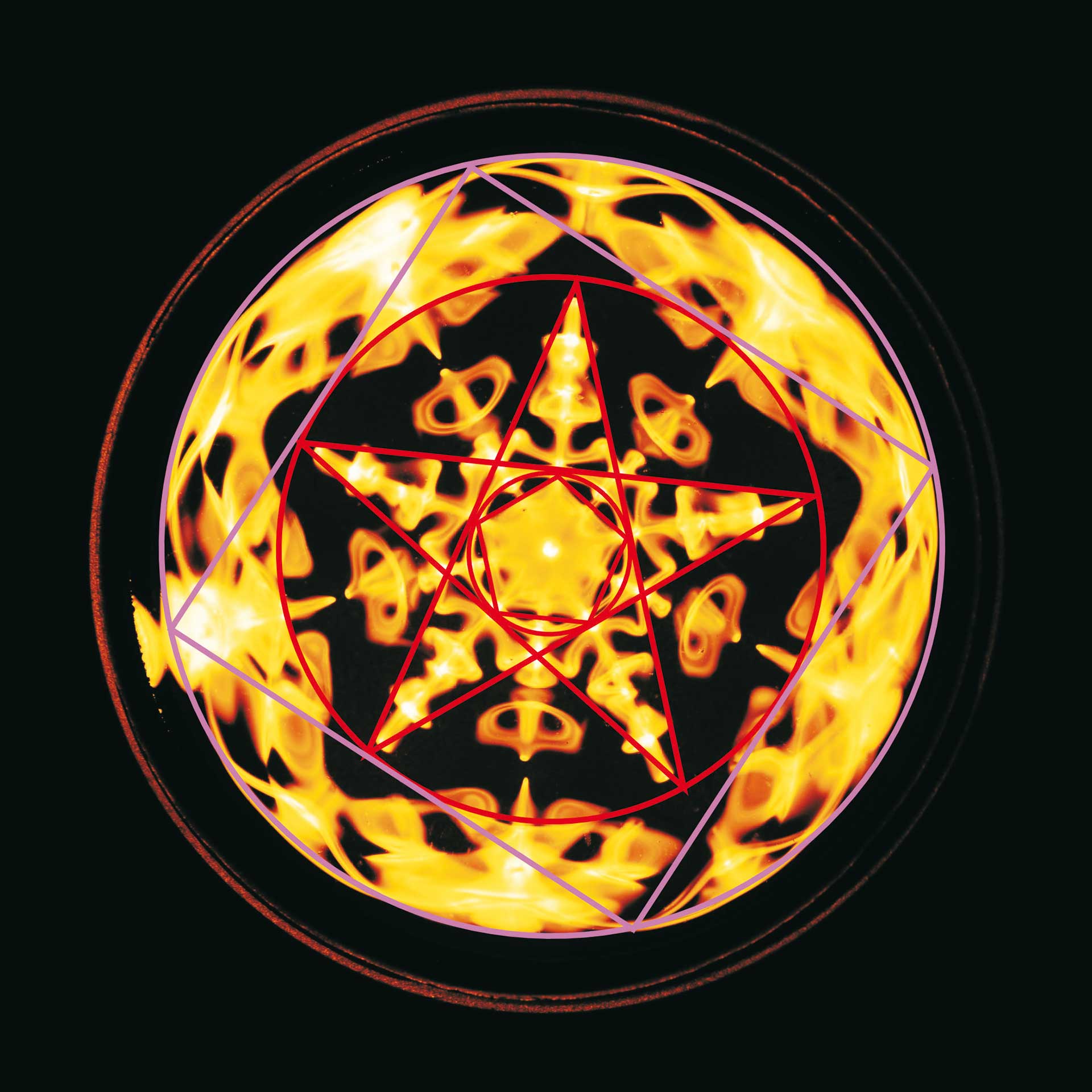 Und eine solche Strukturierung durch Sternfiguren tritt natürlich nicht nur in den drei gezeigten, nach der Zahl Sechs geordneten Bildern auf. In sehr vielen Planetenfiguren, Blüten, Wasserklangbildern und auch anderen Formen in der Natur finden wir, dass Verschachtelungen von Stern- und/oder Eckfiguren die große Struktur (selbstverständlich nicht jedes Detail) bestimmen. Die nächsten Abbildungen zeigen dafür weitere Beispiele. Wir beginnen mit der Zahl Fünf (Abb. 9).