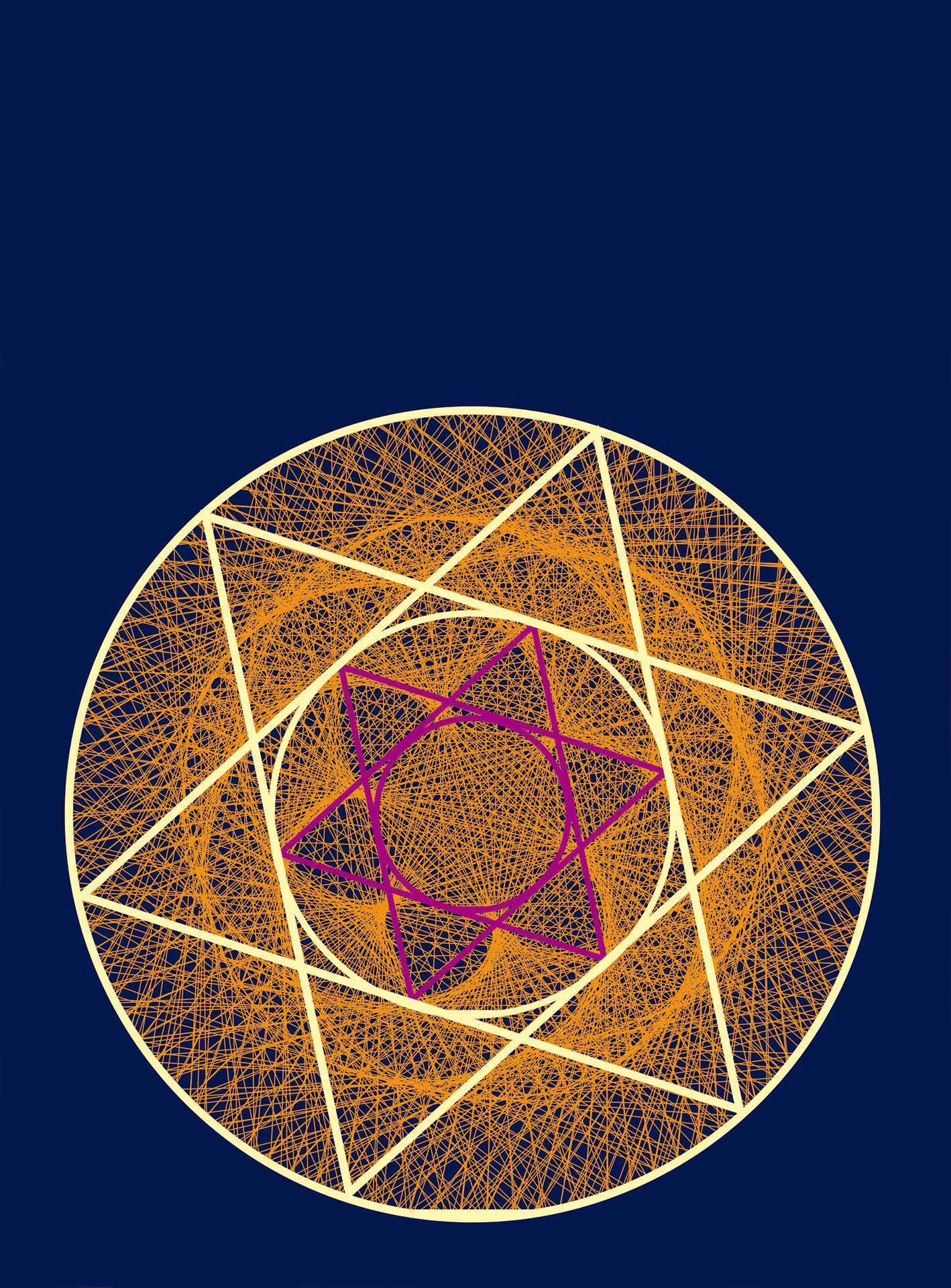 Eine Gesetzmäßigkeit aller regelmäßigen Sternfiguren ist also, dass sie einen Inkreis haben, welcher die Mittelpunkte des innen liegenden Polygons tangiert. Sie haben zudem einen Umkreis (in Abb. 2 nicht eingezeichnet). Er berührt jeweils alle Spitzen. Jeder Stern hat ein für ihn charakteristisches Verhältnis von Umkreis und Inkreis. Wie groß ist dieses, bezogen auf die Radien, beim Sechsstern?
