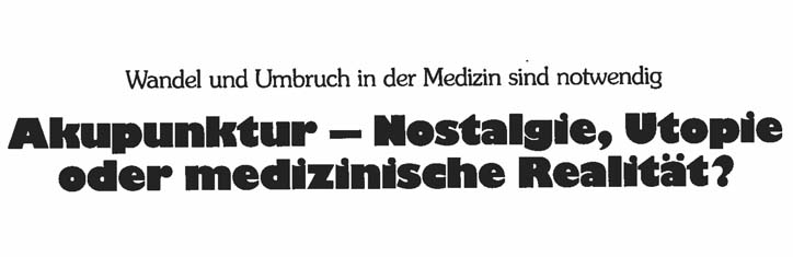 Akupunktur – Nostalgie, Utopie oder medizinische Realität?