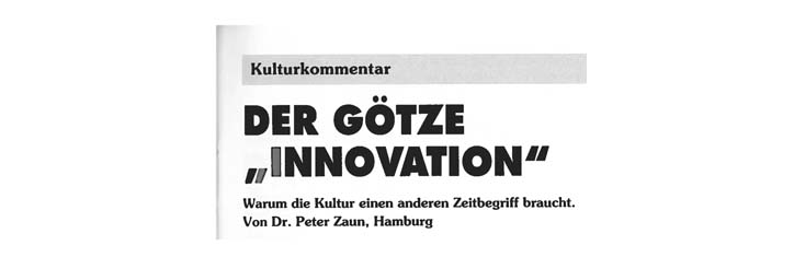 Den nachfolgenden Kulturkommentar sendete der Bayerische Rundfunk im Herbst vergangenen Jahres. Mit Erlaubnis des Autors und des Rundfunks drucken wir den Kommentar nach. Er dürfte den raum&zeit-Leser/innen aus der Seele sprechen. Er ist so gut und kompakt, daß man ihn immer wieder lesen kann.