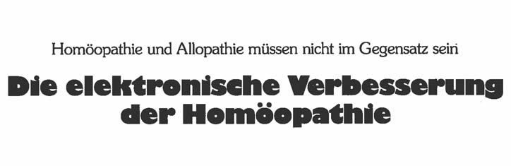 Der folgende Beitrag stellt eine Fortsetzung und Weiterführung des in raum&zeit Nr. 22 erschienenen Beitrages u ber mikroelektronische Möglichkeiten in der Homöopathie dar.