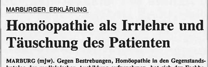 Im Frühjahr vorigen Jahres rauschte es im Blätterwald der Fachpresse: Die Marburger Universität, bisher schon durch besonders brutale Tierquälermethoden an Affen unangenehm aufgefallen, hatte die Homöopathie zur Irrlehre erklärt. Einfach so. Plitsch, platsch. Im Stile einer päpstlichen Bannbulle oder eines absolutistischen Herrschers verkündeten die Professoren: “Der Fachbereich Humanmedizin der Philipps-Universität Marburg verwirft die Homöopathie als eine Irrlehre”. Solche arroganten Sprüche kannte man bisher nur aus Rom, wo unter Berufung auf die Unfehlbarkeit des Papstes beispielsweise Luthers oder schon mal Galileis Lehren zu Irrlehren erklärt wurden. Wenn im ähnlichen Stil im Jahre 1993 außer Kontrolle geratene Professoren eine seit 200 Jahren bewährte Heilmethode feierlich zur “Irrlehre” erklären, dann wirkt das einfach lächerlich. Inzwischen wäre mancher Professor besagter Uni froh, wenn er mit dem peinlichen Vorfall nicht mehr in Verbindung gebracht würde. Doch dafür ist es jetzt zu spät. raum&zeit hat die Hintergründe recherchiert, wie es zur “Marburger Erklärung” kam.