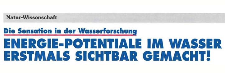 Das Phänomen ist unglaublich und doch für jedermann nachvollziehbar: Wenn man eine Wasser-Probe entsprechend behandelt, entsteht eine Kaskade von Farben, die sich im Laufe von Minuten verändert! Zum ersten mal ist es gelungen, Energiepotentiale und damit das physikalische Leben im Wasser sichtbar, vergleichbar und dokumentierbar zu machen! Die Auswirkungen dieses Verfahrens, das inzwischen patentiert wurde, sind noch gar nicht abzusehen. Die Frage, ob man Wasser physikalisch behandeln kann, ist damit schon mal geklärt. Denn man kann jetzt anhand der Farben nicht nur erkennen, daß das Wasser physikalisch behandelt wurde, sondern auch, ob die Behandlung energetisch gut für das Wasser war. Aber das ist erst der winzige Anfang. Mit dem Verfahren ist es auch möglich festzustellen, ob und wie Permanent-Magneten auf Wasserleitungen wirken. Doch erst soll einmal das Verfahren selbst vorgestellt werden, das ebenso sensationell wie einfach ist. Mit diesem Verfahren beginnt ein neuer Abschnitt in der Wasserforschung, bei der sich die orthodoxen Naturwissenschaften bisher ja nicht gerade mit Ruhm bekleckert haben.