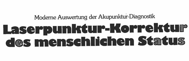 Die Laserpunktur ist eine anerkannte Methode auf dem Gebiet der Reflexotherapie zur Prophylaxe gegen Erkrankungen und zur Regulierung des psychophysiologischen Status (PPS) des Menschen, wenn es gilt, etwa der Müdigkeit vorzubeugen oder sie zu vermindern, die Resistenz gegen Streß zu erhöhen und so die Arbeitskapazität und die beruflichen Aktivitäten des Menschen zu bessern.