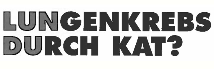 Das Erscheinen der Dokumentation ‘Der steuerbegu nstigte Lungenkrebs‘ (raum&zeit special 2) hat naturgemäß sehr viel Staub aufgewirbelt, wie bereits zuvor die Veröffentlichung in der BUNTEN Ill. vom 22.03.89, S. 96. (Der Kat muß weg. Er erzeugt Krebs). Ein Interview im NDR-Fru hkurier vom 21.04.89, von Herbert Fricke hervorragend moderiert, tat ein Übriges: Der Umweltbeauftragte Dr. Vahrenholt verunglimpfte mich in denkbar entstellender Weise im NDR-Radio, und der ADAC in seiner ‘Motorwelt‘ nicht minder. Indes habe ich dies (auch in der Form) erwartet, es war im Prinzip nach meinem Auftritt im ZDF im Juli 1987 nicht anders, als ich auf das Benzol-Problem des bleifreien Benzins hinwies. Damals u bel verleumdet, hat mir die Entwicklung in nur zwei Jahren mehr als Recht gegeben. In der Kat-Angelegenheit wird es nicht anders sein. Aus vielen triftigen Gru nden, wissenschaftlich, technisch, wirtschaftlich und politisch.