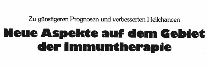 Die ständig zunehmende Bedeutung der Immunologie hat dazu gefu hrt, daß die Immuntherapie heute aus der modernen Medizin nicht mehr wegzudenken ist, und Prof. Allan Goldstein, der Entdecker des Thymosin, sagte uns fu r dieses Jahrhundert eine Epoche der Immunpharmakologie voraus. Trotzdem Speransky und Pettenkofer beweisen konnten, daß Erreger keine Krankheiten zu verursachen brauchen, wenn die Immunlage des Menschen intakt ist, so dauerte es dennoch viele Jahrzehnte, bis die Immunforschung in die Medizin einbezogen wurde.