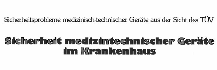 In ju ngster Zeit ist die Diskussion über die Sicherheit medizinisch-technischer Geräte immer lauter geworden. Pressemitteilungen und Fernsehsendungen u ber unsichere elektromedizinische Geräte sowie u ber Verletzungen und Todesfälle werfen die Frage nach der Sicherheit von Patienten und Pflegepersonal auf. Da wird berichtet von einem Säugling, dem während einer Infusion Luft in die Venen gepumpt wurde, von einem anderen, der infolge des Versagens des Inkubatorthermostats starb, von zwei Patienten, die gleichzeitig an einem Großdialysegerät starben, von einem Patienten, der infolge der Zündung von Darmgasen durch ein elektrisches Operationsmesser starb, von schweren Verbrennungen durch Verwechseln des Steckers eines HF-Chirurgie-Geräts, von irreparablen Strahlenschäden durch defekte Strahlentherapie- oder Röntengeräte oder von Herzkammerflimmern durch defekte EKG-Monitoren.