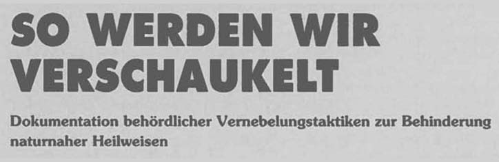 Immer noch werden naturnahe Heilweisen mit der Begründung abgelehnt, ihnen fehle die “Wissenschaftlichkeit”. Zwar hat der Bundesgerichtshof auf Klage des Berliner Verbrauchervereins die “Wissenschaftsklausel ” der privaten Krankenversicherung für unwirksam erklärt (Urteil vom 23.6.93 Aktenzeichen IV ZR 136/92), zwar ergeben die Recherchen immer wieder, daß für die Anerkennung oder Aberkennung des Prädikats “wissenschaftlich” niemand zuständig ist, aber das alles ändert nichts an der Tatsache, daß ferngesteuert von den Pharma-Multis naturnahe Medizin in der Praxis nach wie vor massiv behindert wird, sei es als Arznei, sei es als Therapie. Das ZDN veröffentlicht nachstehend eine weitere Dokumentation darüber, wie Politiker, Ministerien und Behörden öffentlich Positionen pro Naturheilverfahren vertreten, um genau diesen Naturheilverfahren nicht öffentlich, wenn sie also glauben, nicht erwischt zu werden, den Garaus zu machen.