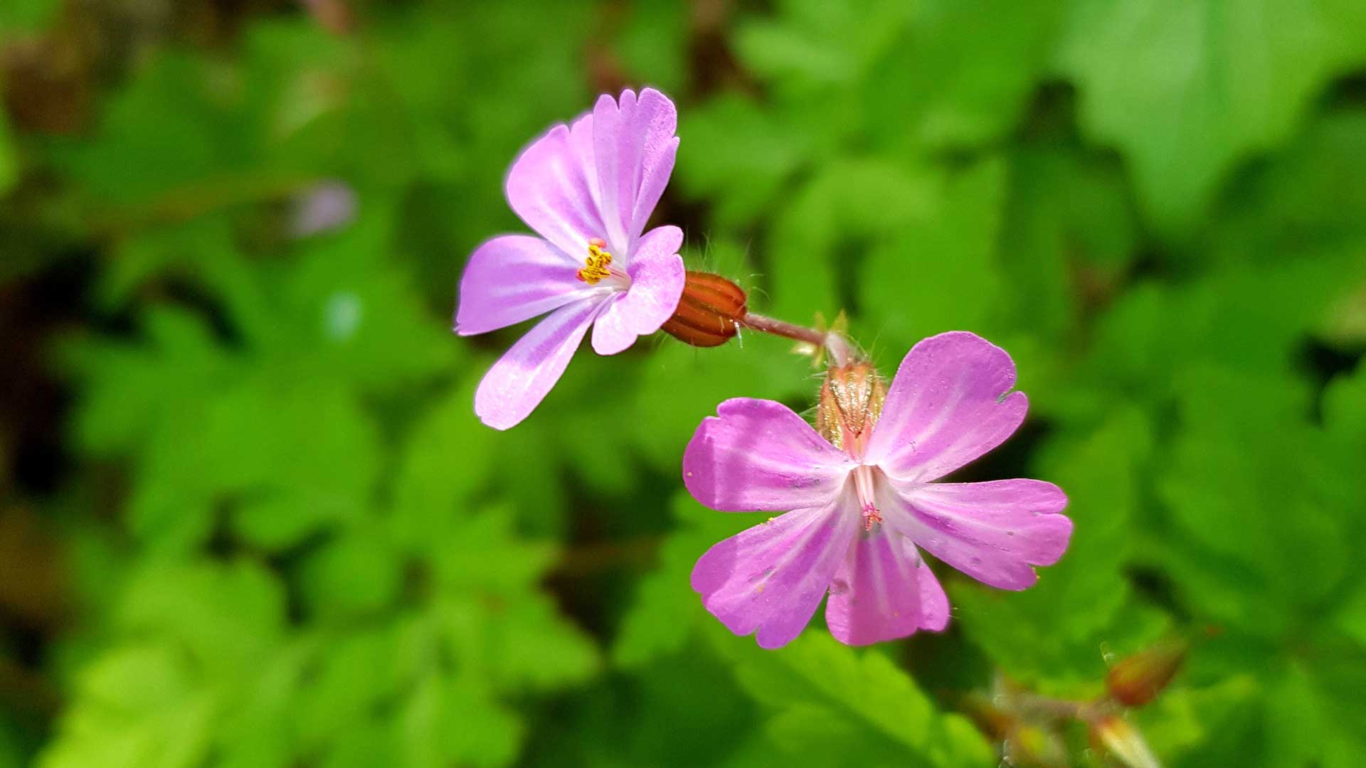 Unter Hecken, an Waldrändern, neben Mauern und an halbschattigen Orten wächst ein kleines sparriges Kräutlein aus der Familie der Geraniengewächse, dessen kleine hellrosaroten, radiärsymmetrischen Blüten dem Betrachter das Herz mit Freude erfüllt. Es ist das Ruprechtskraut, auch Stinkender Storchenschnabel genannt. Der Name Storchenschnabel leuchtet ein, denn die spitz auslaufenden Samenkapseln sehen tatsächlich wie die Schnäbel der Störche aus.