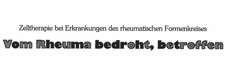 Auf einem internationalen Rheuma-Symposion im Februar 1981 sagte Herr Prof. T. L Vischer/Genf wörtlich: “Es vergeht wohl kaum ein Tag, ohne daß der Arzt oder gar der Spezialist mit entzu ndlich-rheumatischen Erkrankungen konfrontiert wird”.